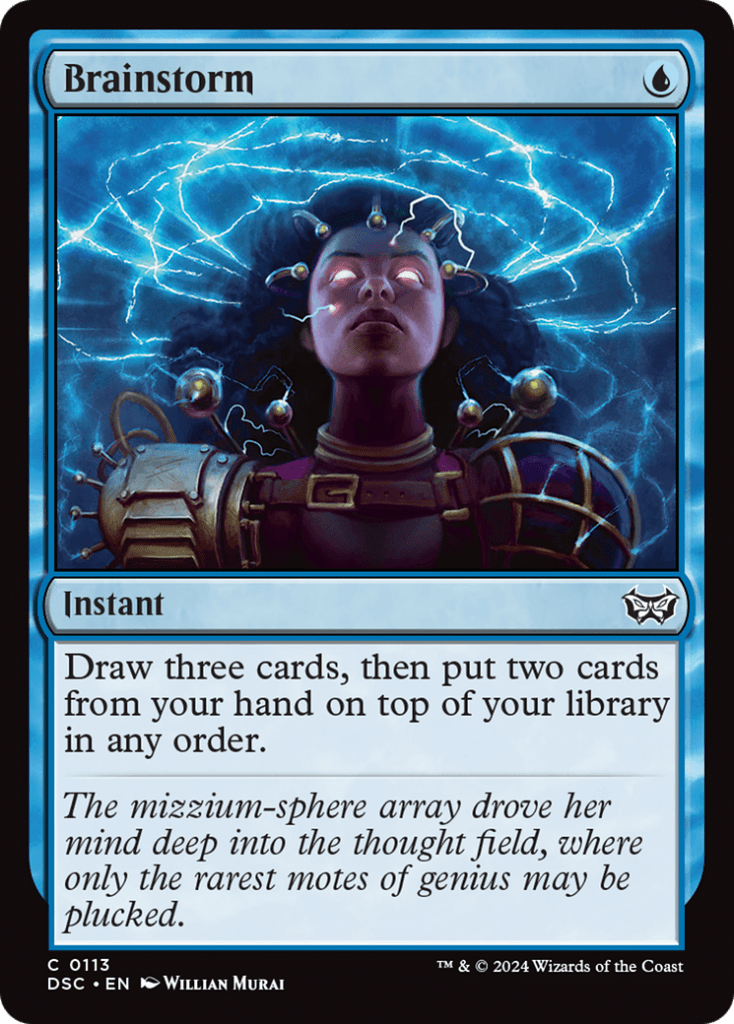 Brainstorm is one of the cheaper ways to get this done, and it does allow us some form of protection to hand attack, and allows us to better filter any shaky starting hands because of it being only one mana to cast.