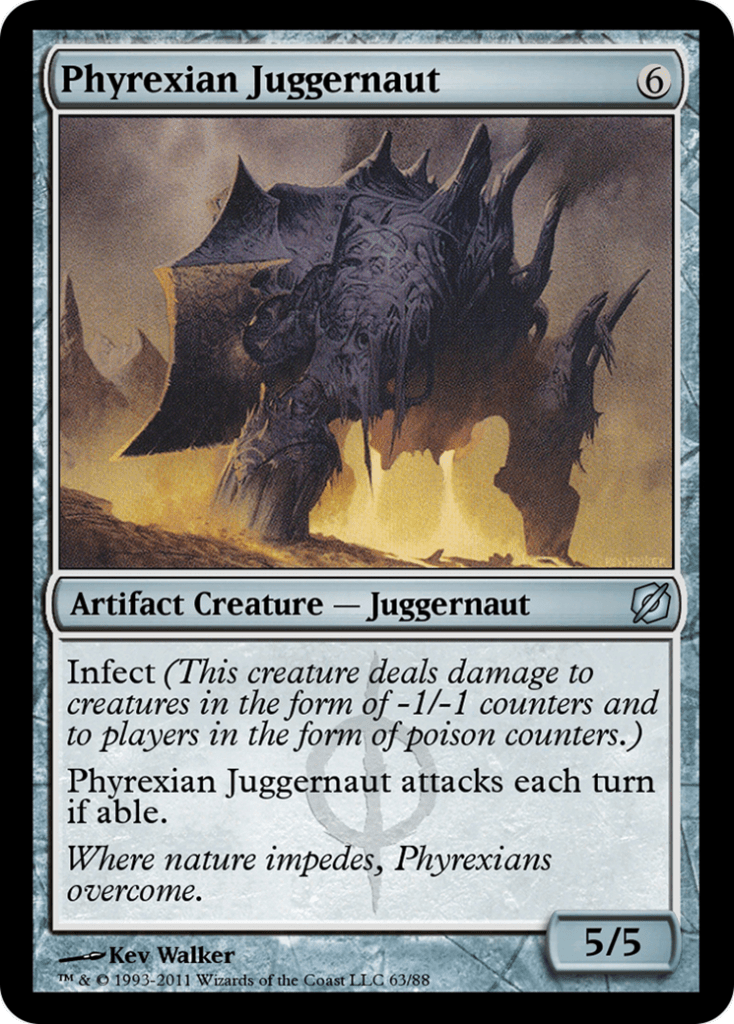 Infect and toxic are going to be essential in the mid to late game when we have a board established, and Phyrexian Juggernaut is one of the bigger threats with the fact that it must attack if able. If we are also able to get a Thousand-Faced Shadow onto the field via Ninjutsu then we can make a second copy to instant kill a player.