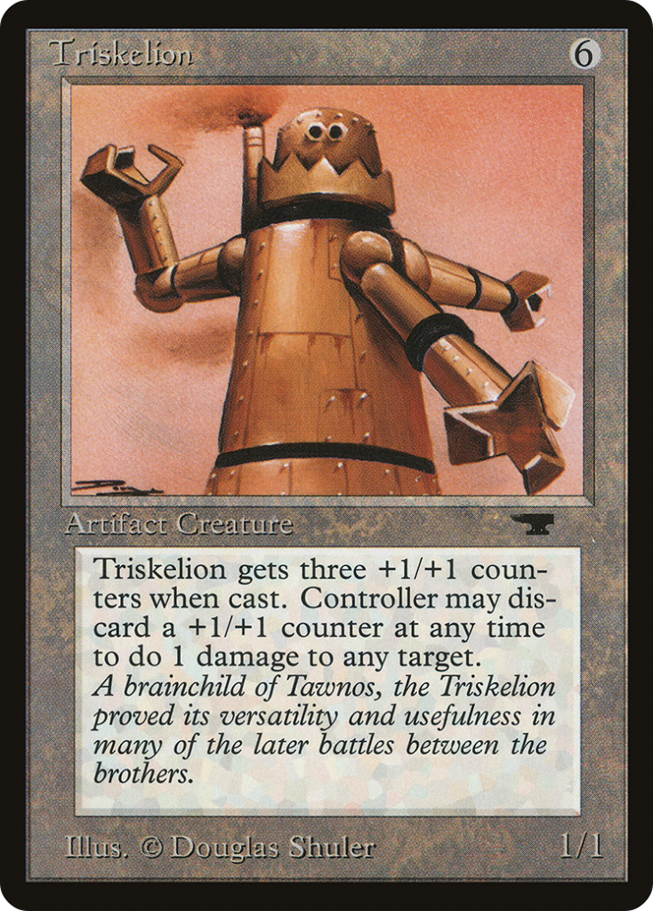 My picks for artifacts are Ashnod’s Altar, Candelabra of Tawnos, Cursed Rack, Millstone, Ornithopter, Primal Clay, Su-Chi, The Rack, Triskelion, and Yotian Soldier.