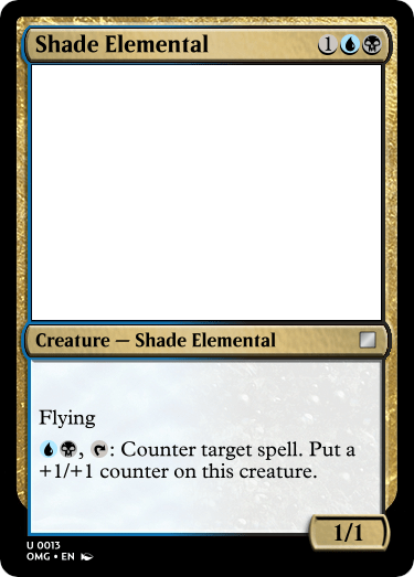 So not only does it counter any spell by paying a blue, black and tap, but you get to also put a +1/+1 counter on it. I may add vigilance later, but I think that would make it too strong, at least in this current iteration.