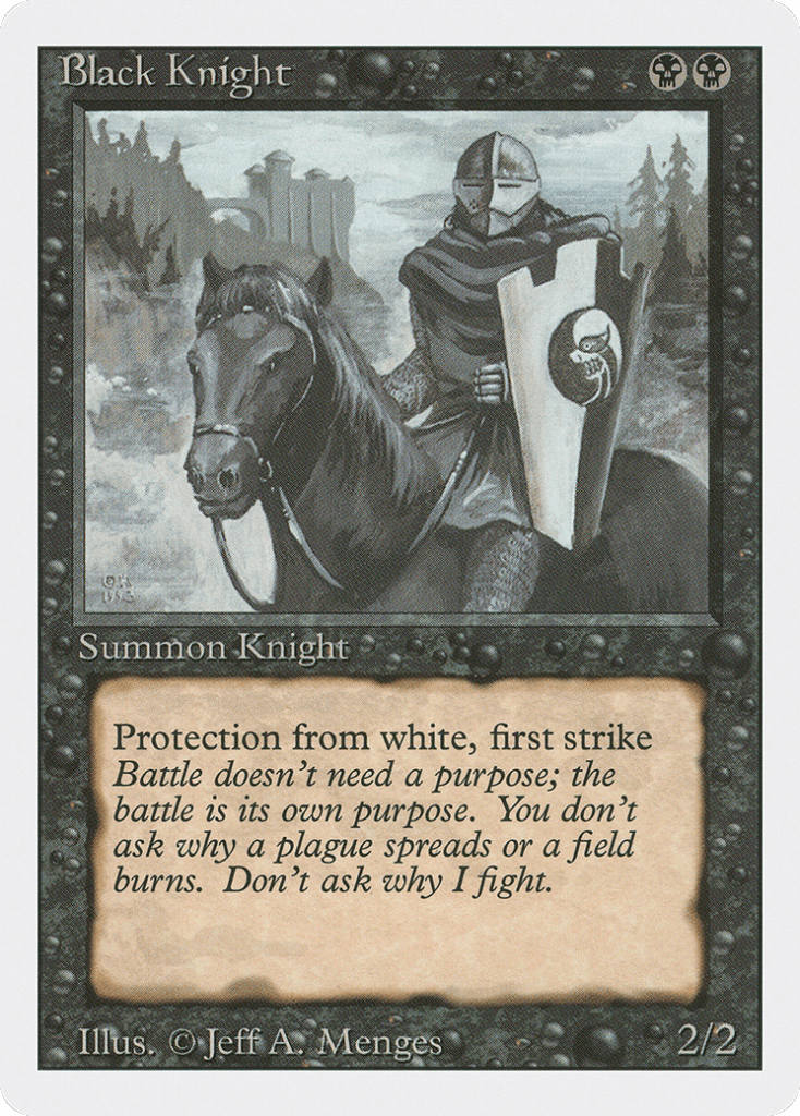 My picks for black are Animate Dead, Black Knight, and Lord of the Pit.