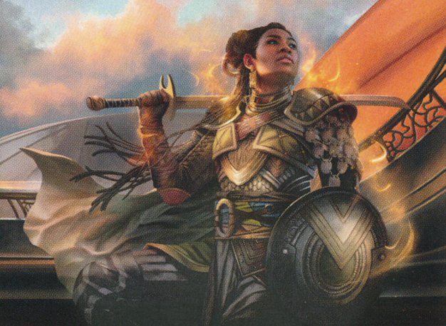 We can also make use of Maja, Bretagard Protector which is also a lord, but makes a 1/1 Human Warrior token as a Landfall ability, which we can make do if we play even a couple of ramp spells.