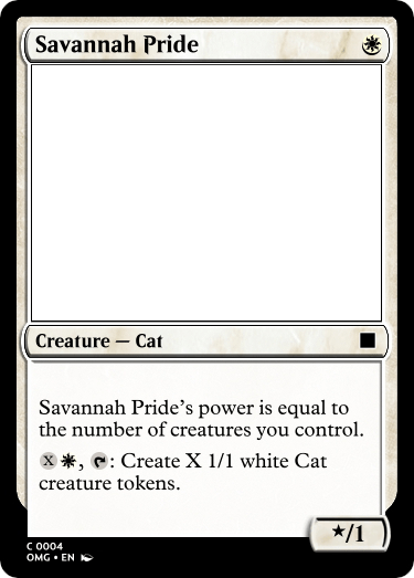 I think Savannah Pride as a Common can work, especially since it is a 1/1 if you play it on turn one, only getting bigger if there are more and more creatures or you can dump mana into it.