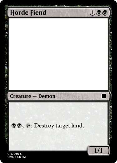 The Common creature for Control was probably one of the harder ones to come up with. The reason being that a lot of what black does in terms of control is destruction based tempo play, and I went back and forth on what form of destruction to go with. I decided to make reference to a card that does a strong form of tempo play, but I am on the fence about the kind of destruction it does.