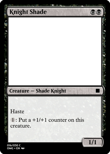 Pit Servant and Knight Shade are the two strongest designs to come from this series of card in terms of how confident I am in them. With Pit Servant it incentivizes you to sacrifice it while it has a higher power and Knight Shade has a Shade pump ability that works well with the Knight archetype boosting other Knights. I am also so happy about the play on words for Knight Shade.
