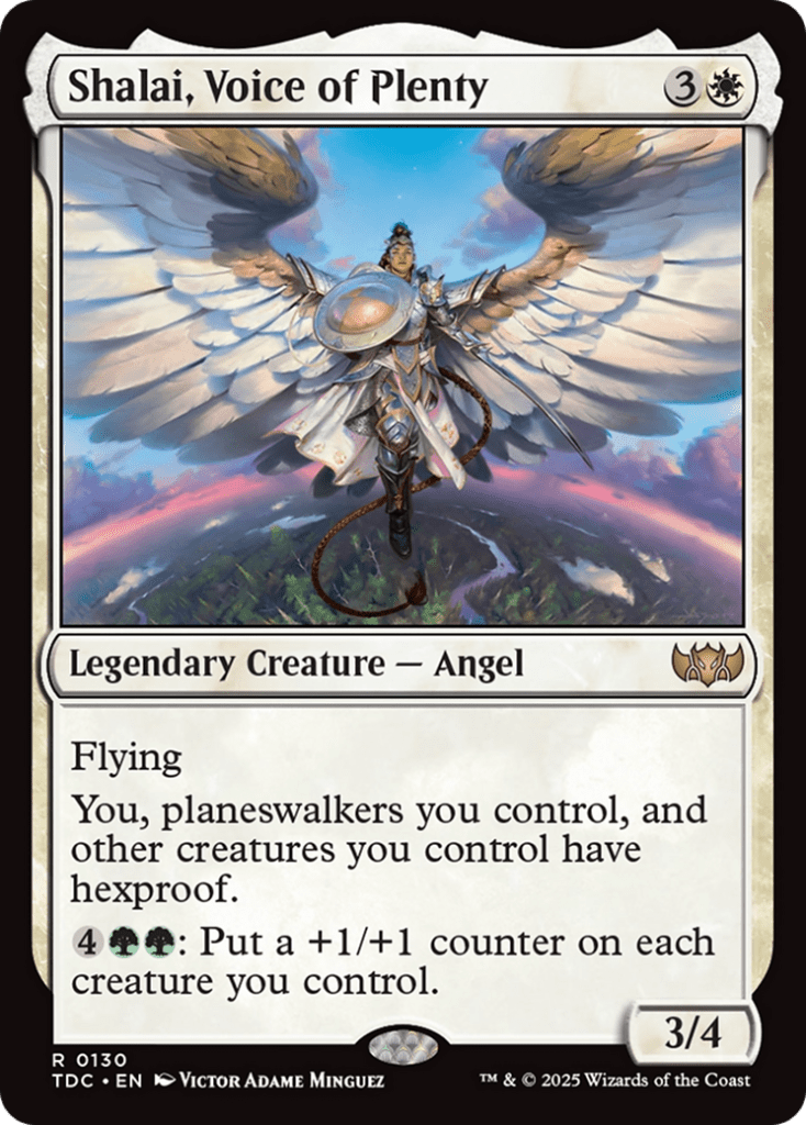 Shalai, Voice of Plenty is a solid bit of protection in giving us, Planeswalkers we control, and other creatures hexproof as a bit of early protection before Storvald comes into play, but also has a mana sink ability in being able to put a +1/+1 counter on each creature we control.