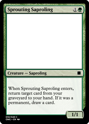 Sprouting Saproling is the one card I am most mixed on in this batch of cards, since it is Regrowth on a body that has some card draw stapled onto it. It could be very strong, or it could just be fine, but it is the one that I think needs the most testing out of all of them.
