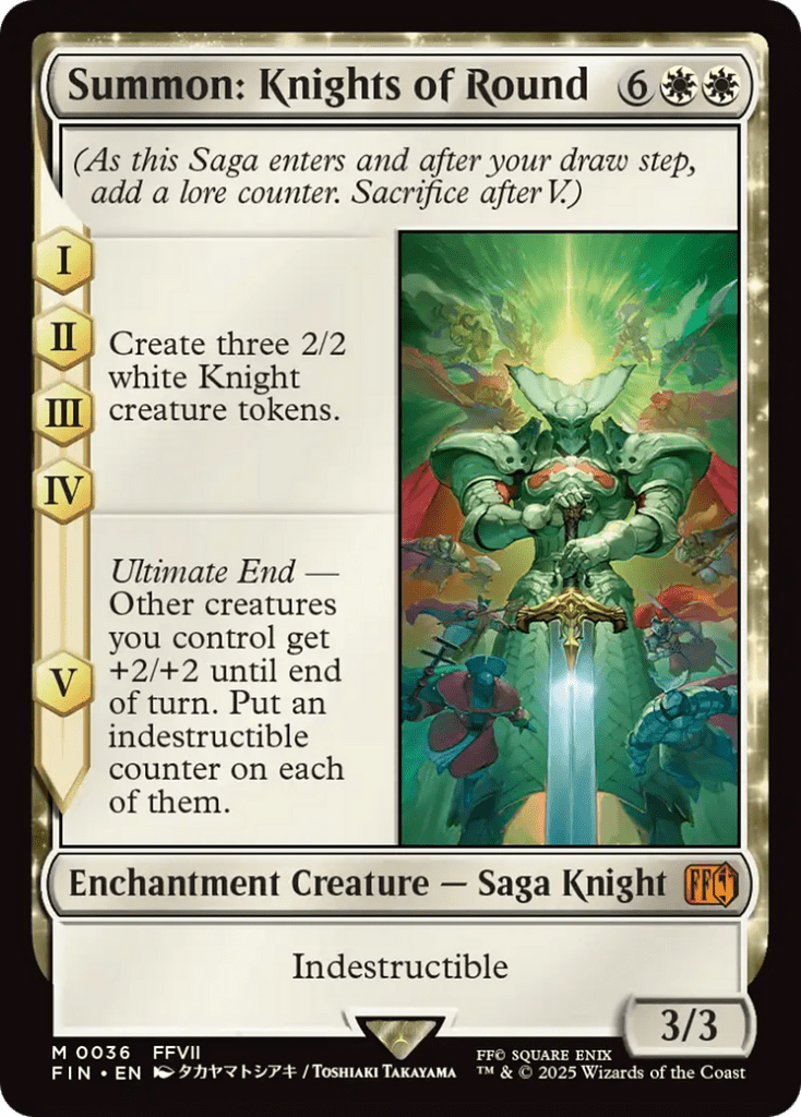 Summon: Knights of Round was the card that basically inspired me when I saw Yenna, because we can make a copy of any enchantment and having a way to make six Knight tokens each turn that become massive and indestructible later made me realize that this deck isn’t just a value pile and can potentially win the game.
