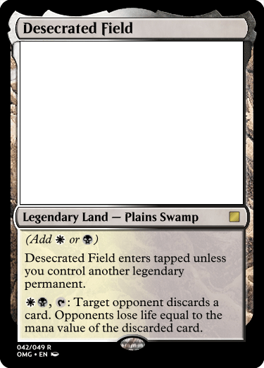 Desecrated Field being able to discard a card and losing life is pretty good, though I may add life gain to help give it a bit more of an impact. Volcanic Vents being a three mana Lightning Bolt is pretty solid, though there may be a version where I have it do 4 damage instead of 3 in the future.