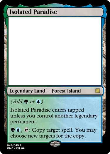 I also happened to use that as a restriction for this as a draft set, by having them all enter tapped unless you control another legendary permanent. This is a nice limiter to have since it will keep the games at a decent parity, even if people draft two of these.