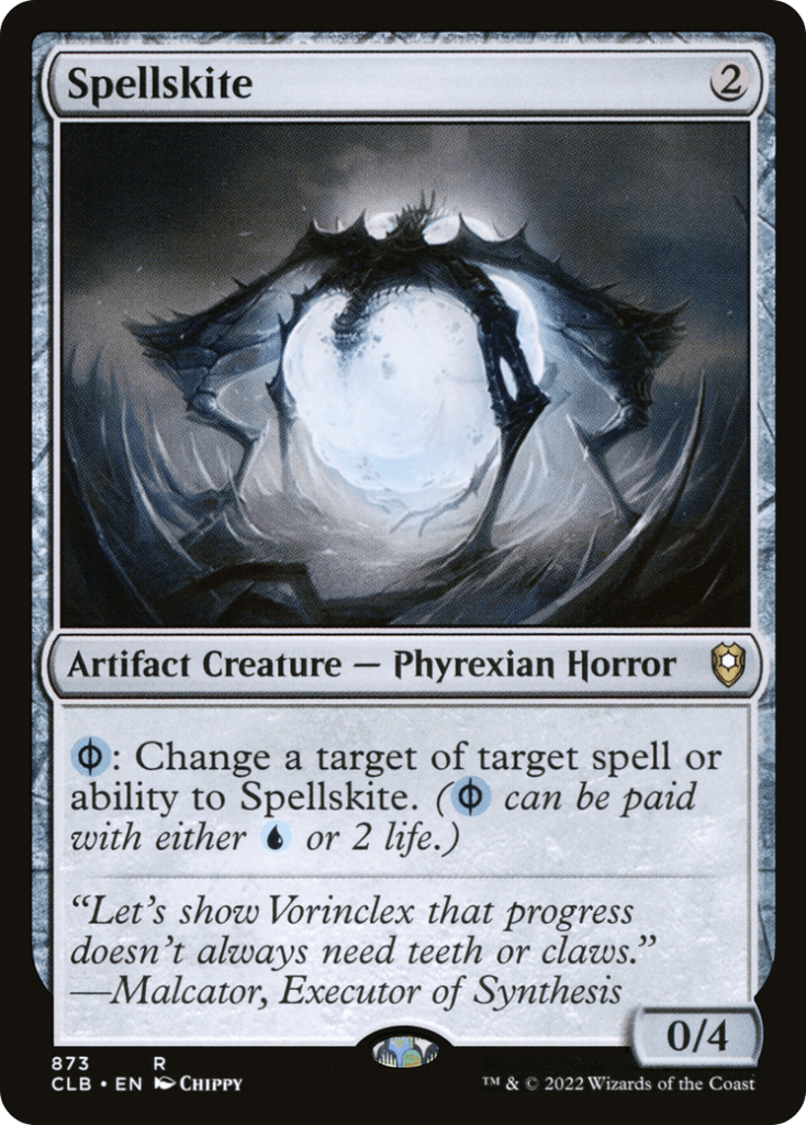 Spellskite is a tricky card that we can use to redirect a spell or ability to target it for a Phyrexian blue, which means that if an opponent is casting some sort of spell to protect a creature, give some counters, remove Talion, or start some sort of combo by targeting something, we can shift it to Spellskite to our advantage.