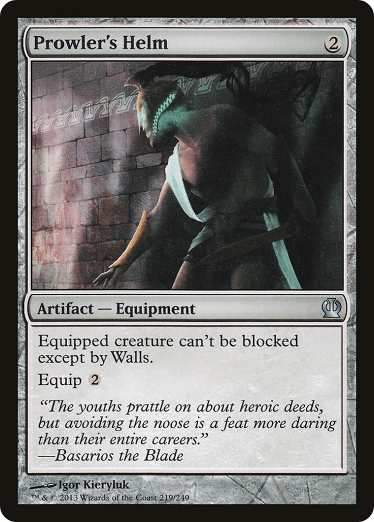 In order to help make sure we get damage through, we can play things like Prowler’s Helm, which makes the creature unable to be blocked by anything except by Walls and Equip 2 which is pretty easy to achieve.