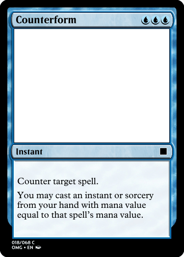 Counterform is one I am really happy with since it is a version of Counterspell, but it has the upside in letting you potentially cast an instant or sorcery from your hand. Hopefully it isn’t too strong for the set at Common, but I do think it rides the line of being strong for a Common.