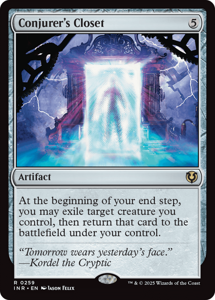 In terms of reliable ways to blink Jan Jansen at least once during our turn, it’s hard to not consider Conjurer’s Closet, which at the beginning of our end step lets us blink a creature we control, and with that creature usually being Jan Jansen, we can make double use of his ability each turn.