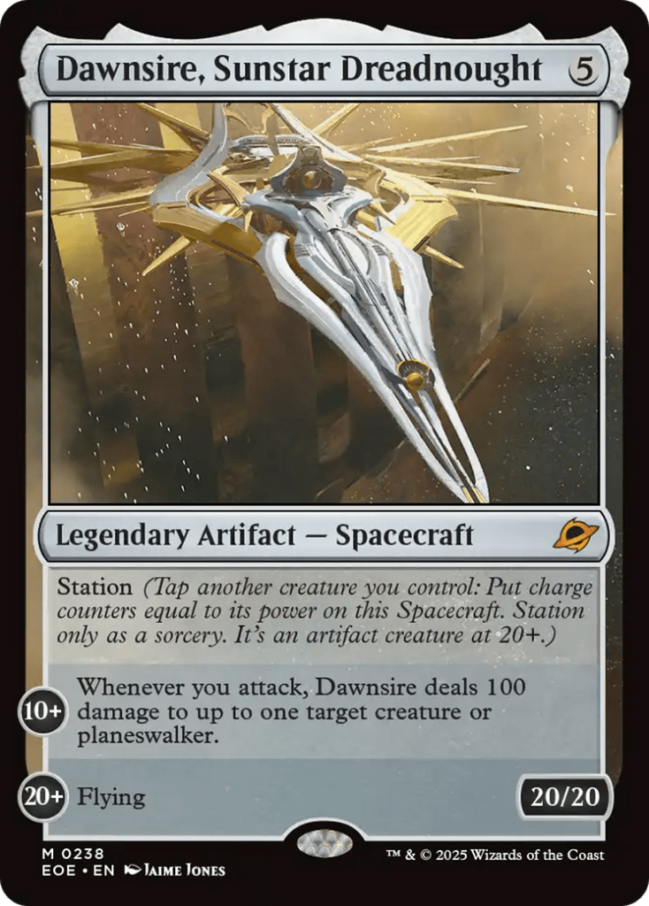 Originally today’s article was going to be about Dawnsire, Sunstar Dreadnaught, but I think it works better as a support piece in Traxos because we can use Traxos to turbo fuel Dawnsire to get to ten charge counters so that when we attack we deal 100 damage to a creature or Planeswalker and then when we get twenty charge counters on it then it becomes a flying 20/20.