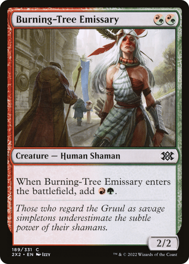 Manamorphose is great because we can add two mana in any combination of colors while also drawing us a card, which if we cast right after casting Burning-Tree Emissary then we can fix our mana while fulfilling the creature and noncreature spell requirement for Eshki.