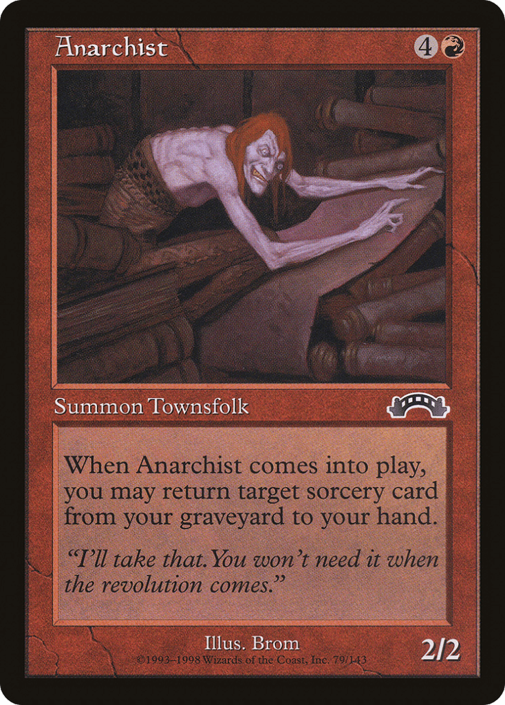 My picks for red are Anarchist, Onslaught, Pandemonium, Price of Progress, and Raging Goblin.