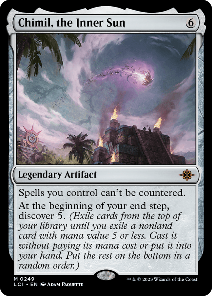 Chimil, the Inner Sun is excellent because not only do we discover 5 at the beginning of our end step, but spells we control can’t be countered, which means we can be a bit more flexible on casting things whenever we want.