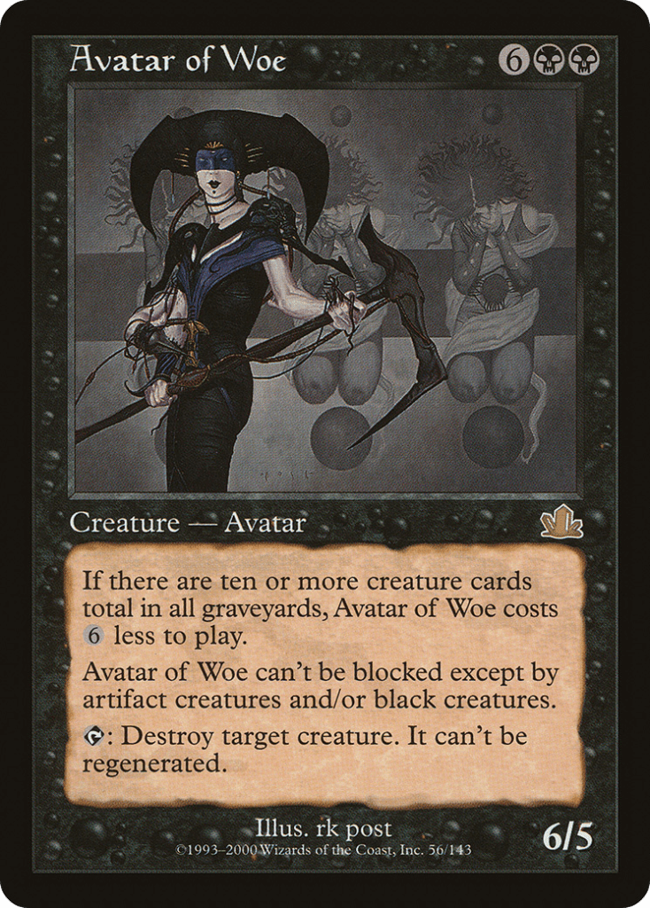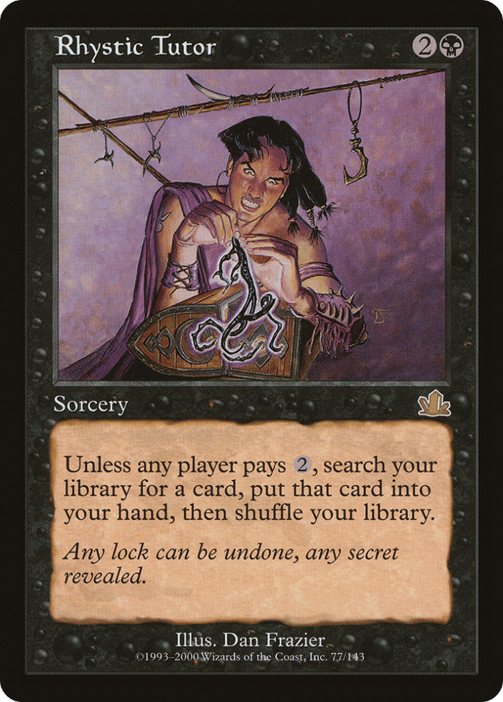 My picks for black are Avatar of Woe, Greel, Mind Raker, Infernal Genesis, Outbreak, Rhystic Tutor.