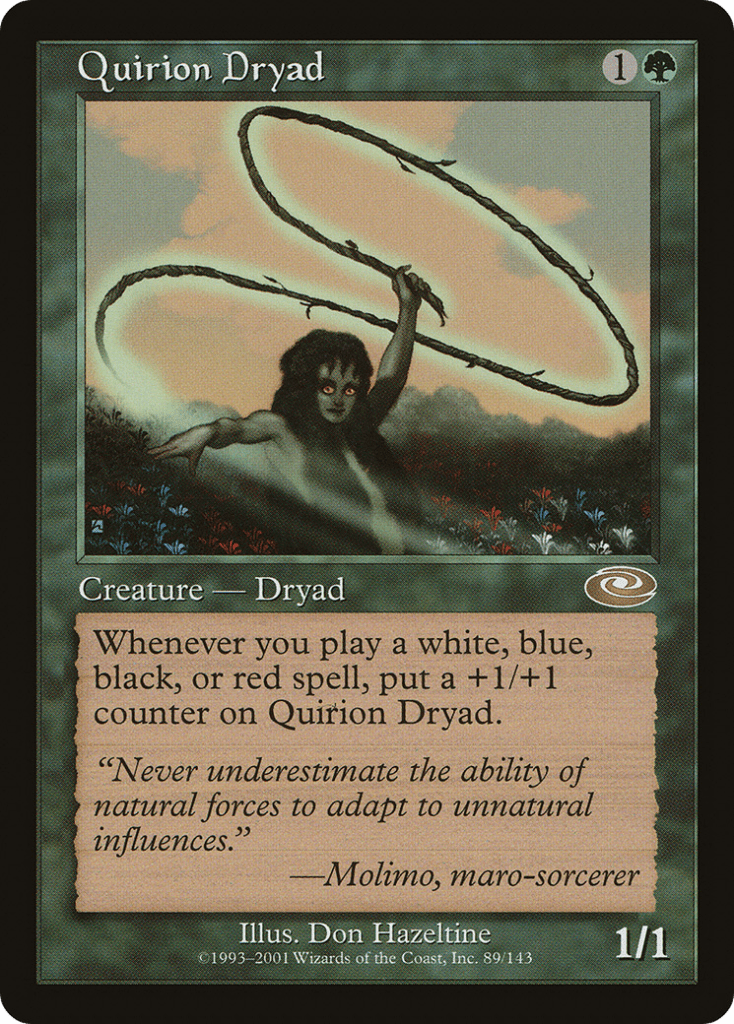 My picks for green are Primal Growth, Quirion Dryad, and Thornscape Familiar.