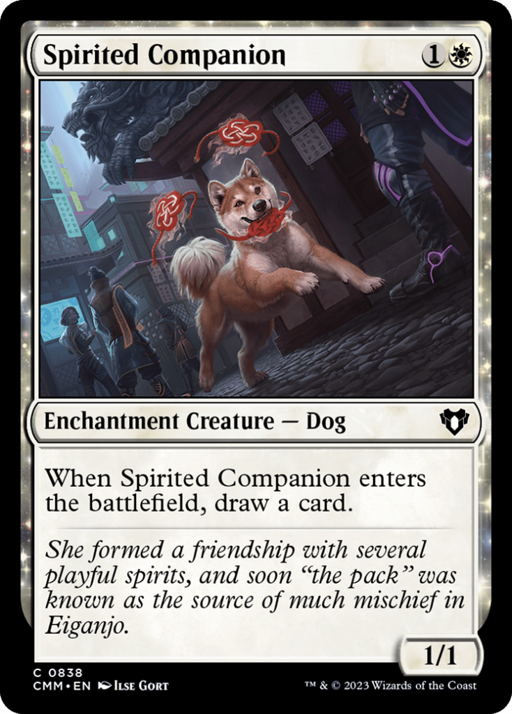 Spirited Companion is one of the better ways for us to get a decent bit of advantage with making it so that we can consistently get to draw a card whenever it enters the battlefield, and more cards when we use Abuelo’s ability.