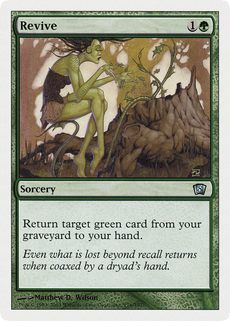 My picks for green are Choke, Elvish Piper, Primeval Force, and Revive.